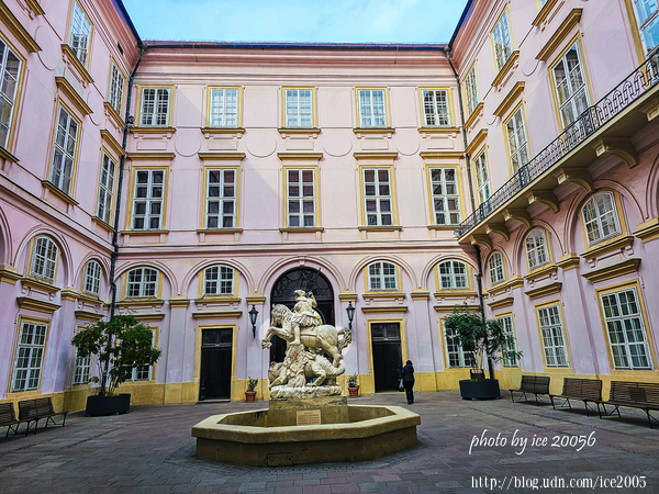#18.大主教宮(Primaciálny palác)中庭一隅......中庭的噴泉雕像是聖喬治噴泉(Fontána sv.Juraja),建於18世紀,旨在描繪聖喬治斬殺三頭惡龍搏鬥的場景。這座噴泉原本位於大主教宮的花園中,1930年,它被移至中庭。