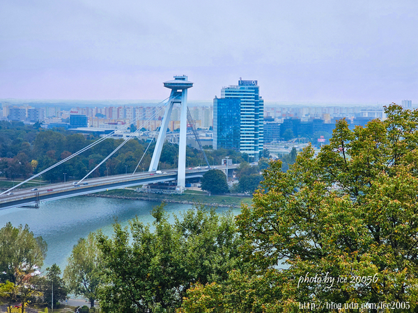 #9.從城堡望向新橋(Most SNP)與新城區......新橋是多瑙河上唯一沒有任何支撐的一座斜張橋,它連結了新、舊城區之間的交通。