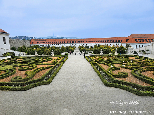 #7.巴洛克城堡花園(Veľká hradná baroková záhrada)一隅......這座花園始建於18世紀瑪麗亞·特蕾莎統治時期(1740-1780年),當時布拉迪斯拉發城堡被改建成一座奢華的巴洛克式住宅。花園的設計靈感源自凡爾賽宮,採用法式花園風格,旨在彰顯哈布斯堡王朝的尊貴地位。1811年,城堡被大火摧毀,之後花園便荒廢,部分損毀。19世紀,花園曾被零星使用,在共產主義時期則被廢棄。1990年代展開修復工程,但主要工程於2012年至2016年間進行,形成今日見的樣貌。