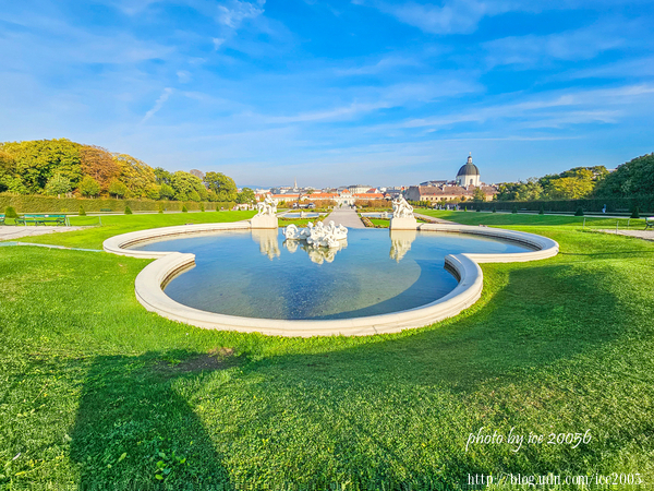 #9.從海神噴水池望向下美景宮(Unteres Belvedere)與舊城區......