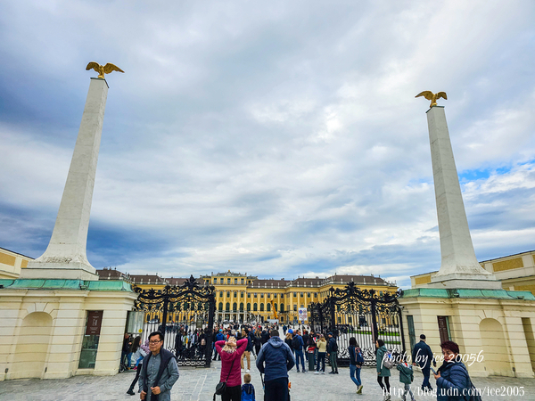 #18.美泉宮(Schloss Schönbrunn)入口大門一隅......大門口兩座高聳的柱頂上佇立著金色的鷹鷲。