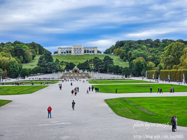 #27.望向山丘上的Gloriette凱旋門......位於山坡上的Gloriette凱旋門是美泉宮的最高點,建於1775年,它是根據建築師Johann Ferdinand Hetzendorf von Hohenberg的設計建造的。