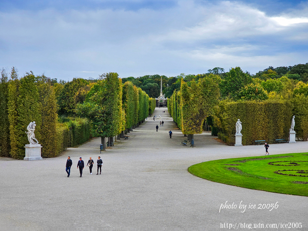 #32.美泉宮花園一隅......前方那座高柱是方尖碑噴泉(Obelisk Brunnen)。