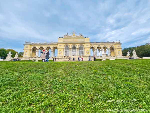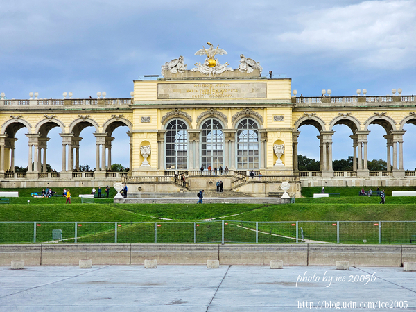 #28.近看Gloriette凱旋門......適逢整修期,凱旋門前那池灩瀲的池水也乾涸了!