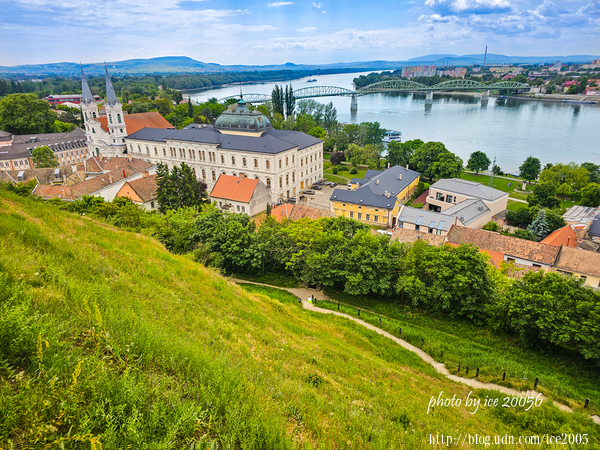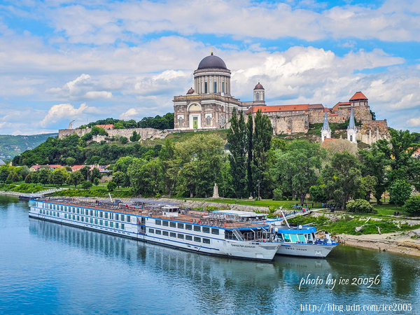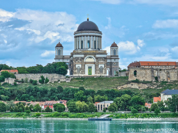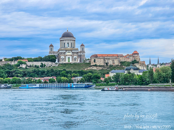 #12.從什圖羅沃(Stúrovo)望向埃斯特貢岸上的埃斯泰爾戈姆聖殿(Esztergom Basilica)與埃斯泰爾戈姆城堡(Esztergomi vár)......畫面右邊與埃斯泰爾戈姆聖殿毗鄰的建群就是埃斯泰爾戈姆城堡,現今的埃斯泰爾戈姆城堡已被改為博物館使用。