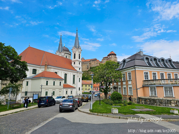 #20.厄斯特貢(Esztergom)舊城街區一隅......畫面左邊聳立著雙鐘樓的教堂是Vizivaros Parish Church。