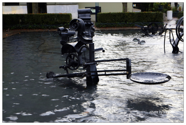 #4.幾何造型的噴泉是利用廢棄的鐵件組合而成,經由機械的轉動產生變化....