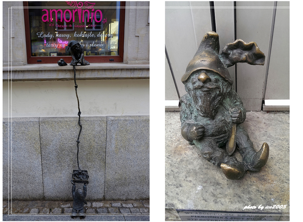 #15.弗羅茨瓦夫的小矮人Wrocław's dwarfs.....這些雕塑源起於1980年代的藝術活動,成員們藉由隱藏在城市角落、造型各異的小矮人雕塑,來表達對當時社會制度及法令的抗議,如今,這些曾經充滿寓意的藝術作品已成為弗羅茨瓦夫的觀光特色之一,當地的旅遊局甚至為此印製小矮人蹤跡地圖作為噱頭來推廣城市的觀光......