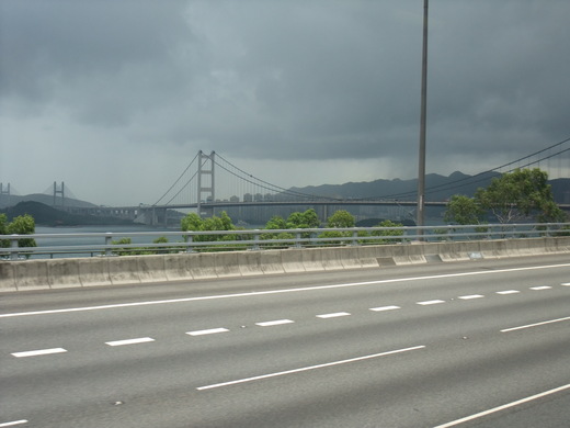 与儿子一起带着老公的外甥女去香港大屿山玩。坐上去机场的巴士,沿途的景色都很不错。