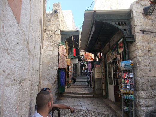 古城里有一条路通往伊斯兰大教堂,那是一个金顶的大教堂,穆罕默德有一次在麦加传教时晚上做梦被天使带到耶路撒冷,脚踩到一块圣石,飞上天,当晚又回到麦加,从此“夜行和登宵”成为穆斯林的重要教义。就因为此,在这里建了这座教堂,从而耶路撒冷成为伊斯兰教的第三大圣地。这个金顶教堂如此眩目,成为耶路撒冷的标志,基督教和犹太教反而有些黯然失色了。总觉得伊斯兰教非常强势,在约旦,百分之90以上的人信仰的都是伊斯兰教,基督教正逐渐消失,基督徒也纷纷迁往海外。