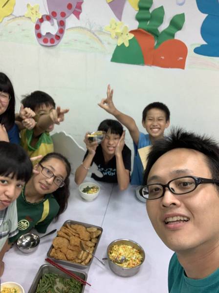 國中生較晚來,就會讓他們先吃飯,然後指定他們該做的事,吃完飯後再去找他們互動,直到七點之後大部分孩子回去之後,我再開始清掃環境跟處理情況較麻煩的孩子。等所有孩子都處理完只剩下我一個人的時候,我會依照社工的要求,把每個孩子今天的發生的事,寫在聯絡簿上。