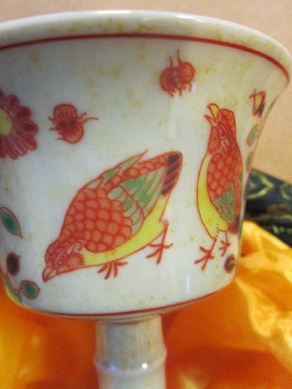 據聞成化明憲宗朱見深寵愛喜歡瓷器的萬貴妃,因而燒造許多質地精良的瓷器,雞缸杯即是代表作之一。