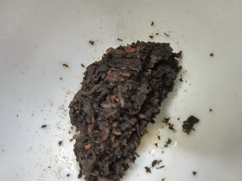 這是一款平易近人的熟茶,每個小餅大約10公克,19小餅捆成一條,裏面用黃色條紋紙包著,外面再用筍殼包裝,非常環保的包裝方式。
