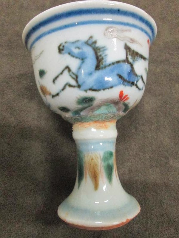 若深醬釉小杯、明成化小馬高足杯、宋鈞小杯