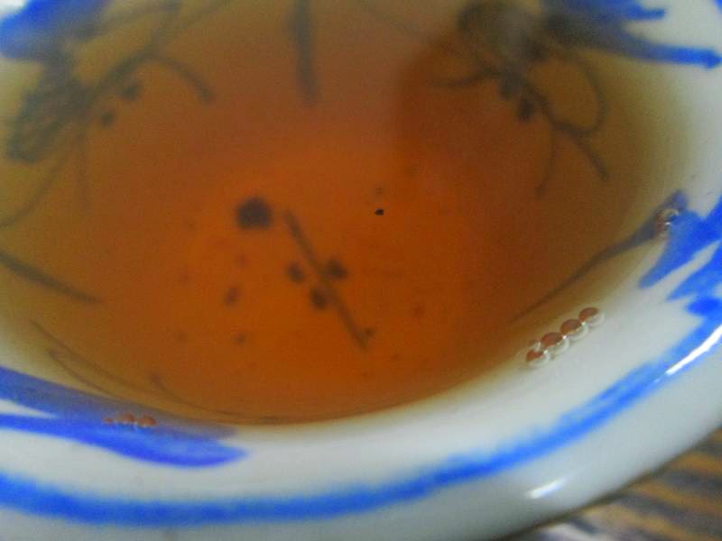 茶葉沖泡後,仍然顯得鮮活,茶湯顏色呈橘紅色。