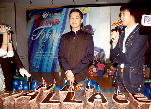 下午三點左右,現場燈光熄滅,在眾多歌迷齊聲合唱的生日快樂歌中,鍾漢良在工作人員的簇擁下緩緩走到舞台中央,一同被推出的還有一盒塑成“HI!WALLACE”的字形生日蛋糕。