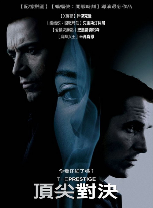 克里斯多夫.諾蘭創新電影格局的功力一直是有口皆碑,這次特意安排蝙輻俠”克里斯汀貝爾”對決金鋼狼”休傑克曼”,兩位演技派的帥氣型男同台飆戲,大大滿足觀眾的看戲心理,此片可說是娛樂與藝術效果兼具,堅強的製片及卡司陣容再加上演員本身的話題性,宣傳手法堪稱一流呀!