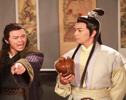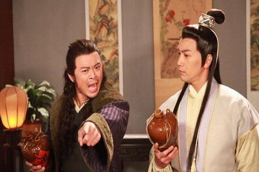 而楚留香身邊由樊少皇扮演的”浪子”胡鐵花則是一身黑衣,一頭長髮,手捧酒壺呈半醉狀,與”盜帥”形成了鮮明的對比。