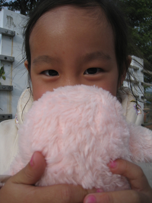 廖咩咩玩著"打電話"的遊戲,突然把話筒拿給我。