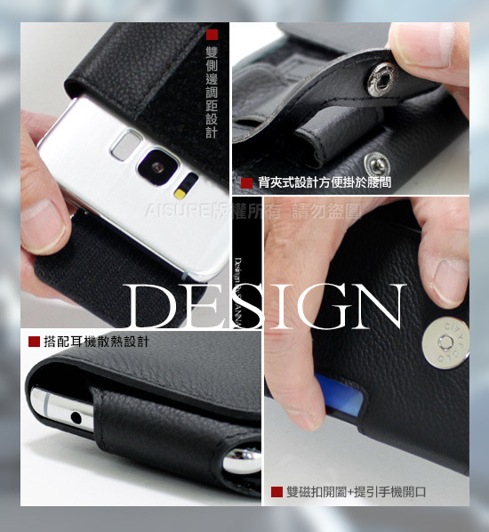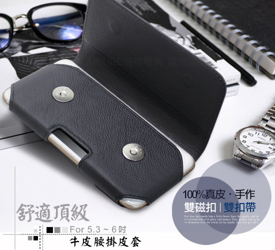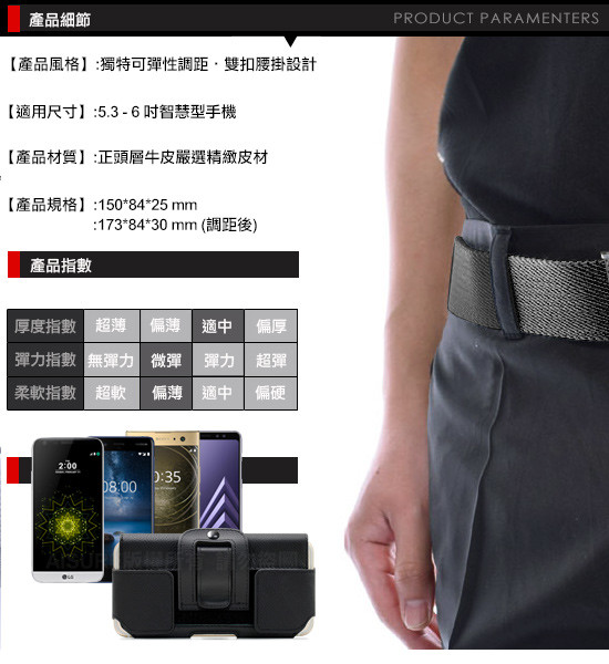 真牛皮魔鬼氈(左右兩端)可調整設計,以上手機型號加防摔殼或TPU套都還可以裝的下,