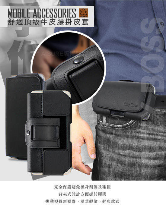 包裝內容物:CityBoss 舒適頂級真皮腰掛皮套 *1