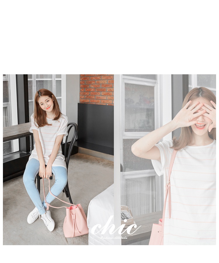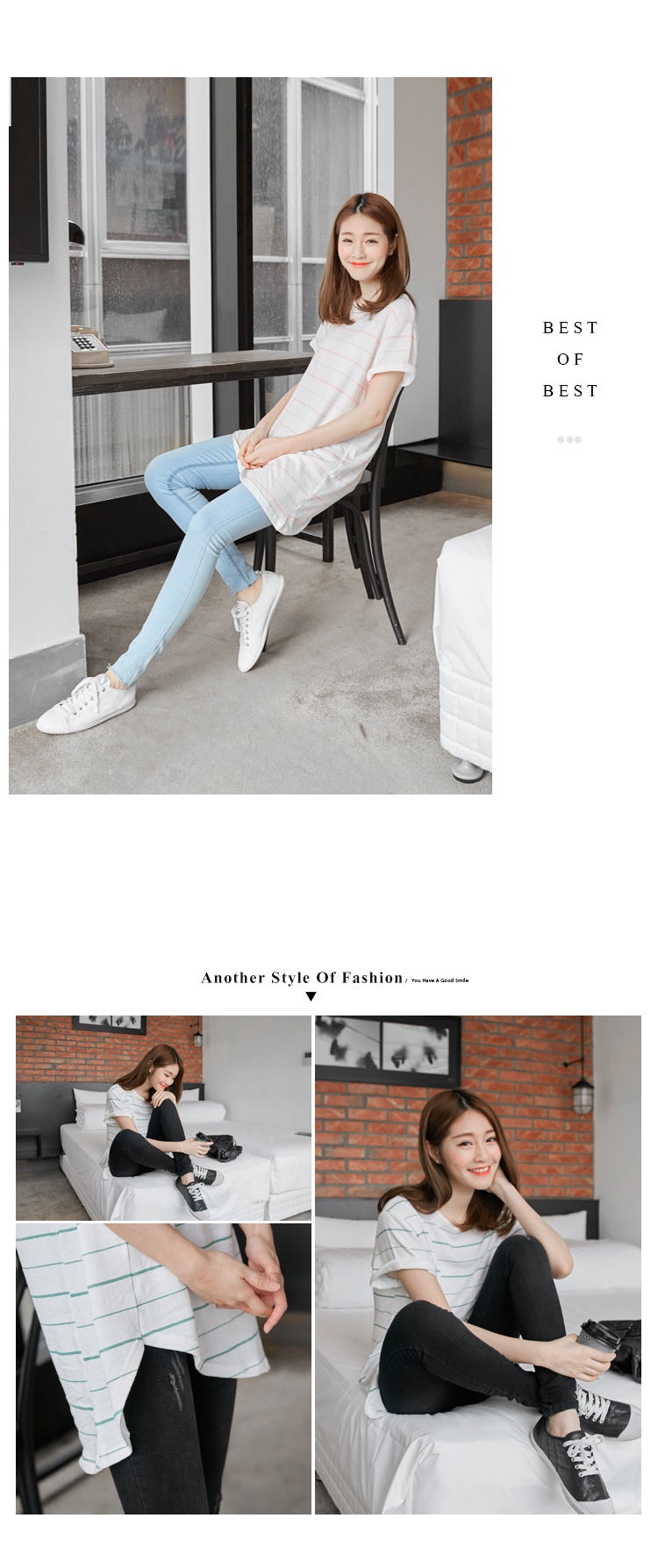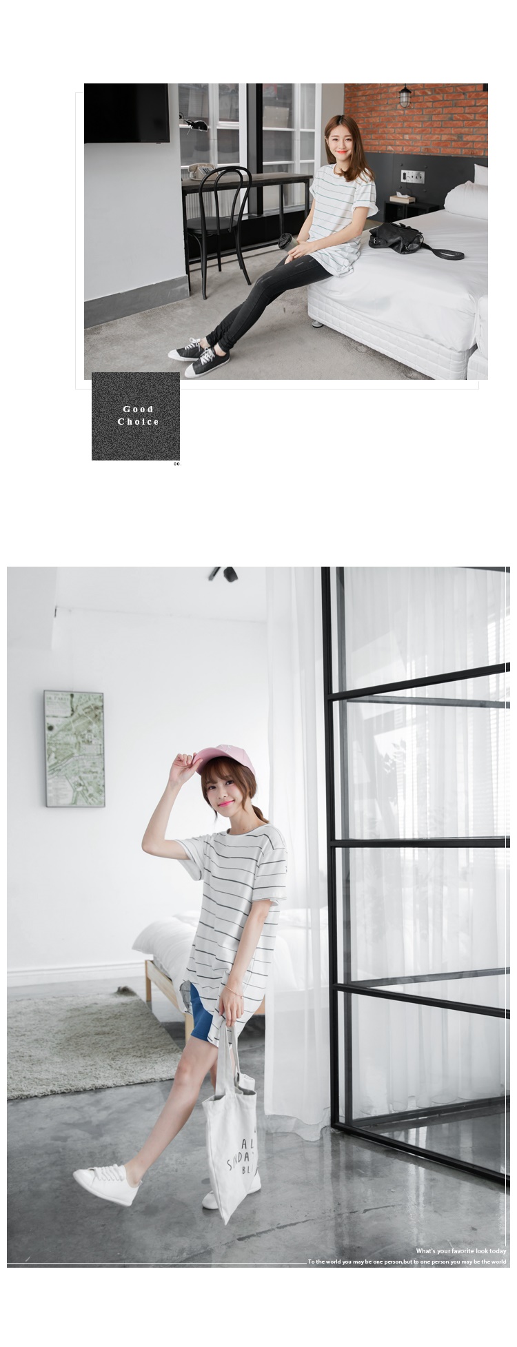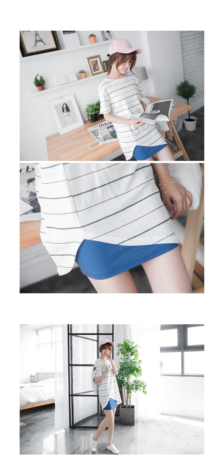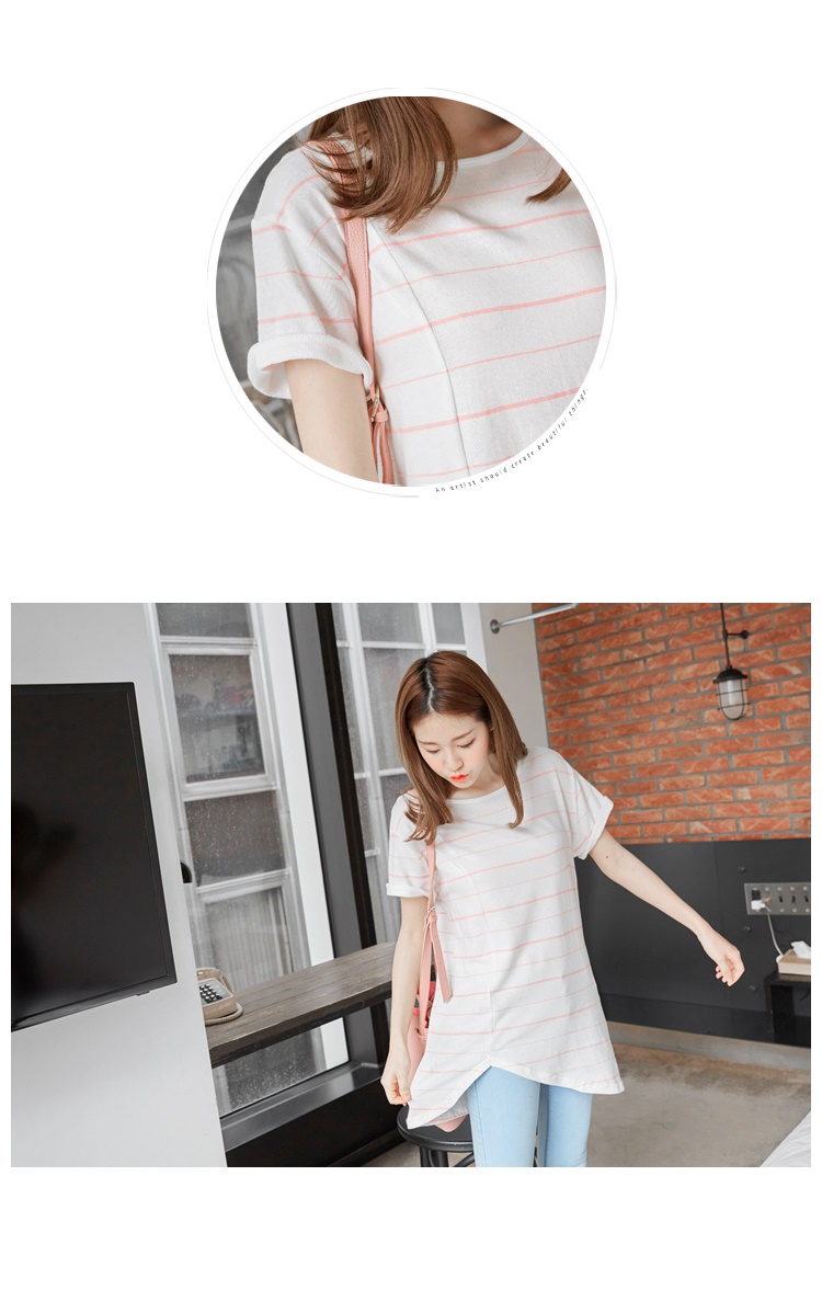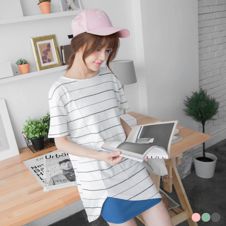 0524新銀行信貸利率比較2016品 橫條紋側剪裁開衩造型圓領短袖長上衣.3色