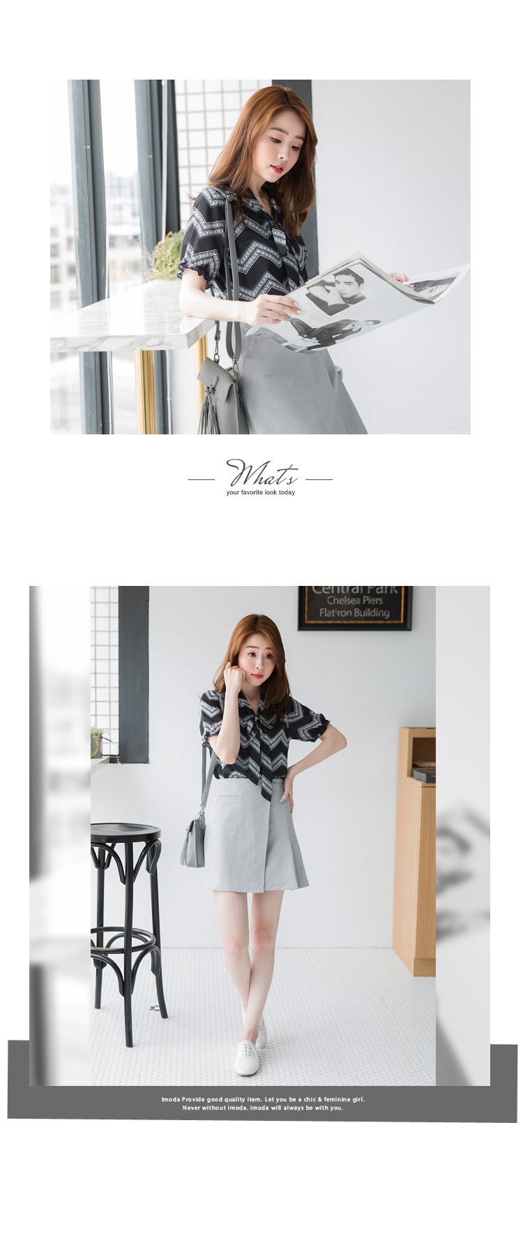 領口的綁帶視覺整體更俐落,袖口鬆緊設計更增添甜美感!