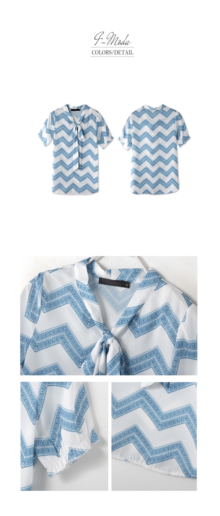 0622新品 雪紡波浪印花綁帶縮口短袖上銀行房貸衣.2色