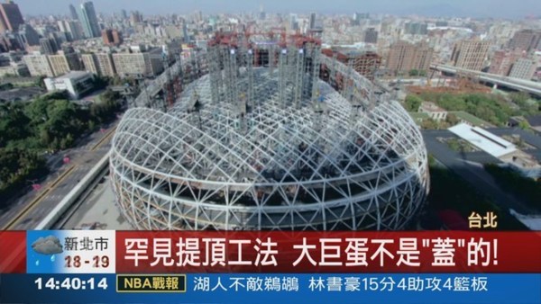 全球罕見提升工法 "提起"4,600噸屋頂 大巨蛋骨架成型 估2015完工2016營運