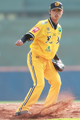 中繼上場的兄弟象投手官大元(見圖 圖片來源:台灣棒球維基館)