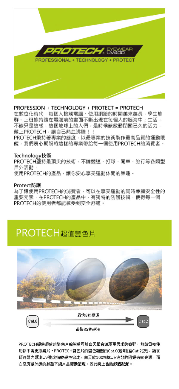 【PROTECH】ADP012專業級運動太陽變色眼鏡(黑&綠色系)抗UV抗紫外線的效果好嗎
