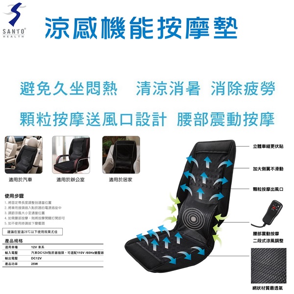 【SANTO】涼感機能舒壓按摩墊(家用車用兩型)ST-115 保固免運-隆美家電-超值推薦