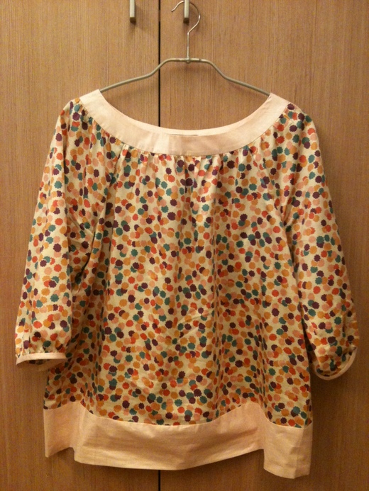 上週末買了這件小寬鬆、顏色粉嫩的上衣,