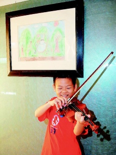 昨天在現場用小提琴演奏「小星星」、「小蜜蜂」等,展露才藝。