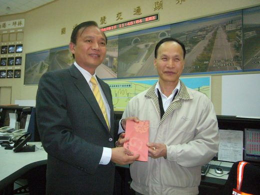 雪隧恐怕又要塞了,宜蘭縣長林聰賢昨天到坪林行控中心慰問,致贈
