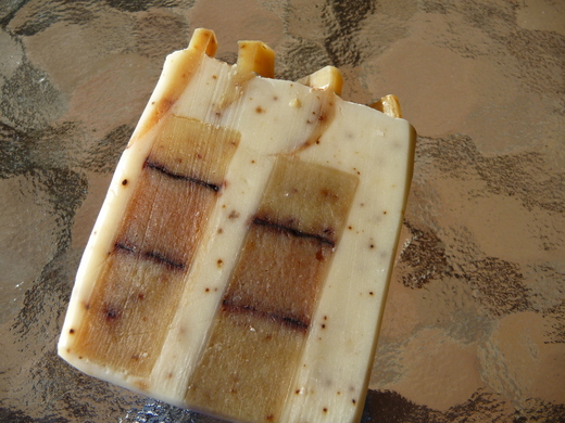 這咖啡浸油是我剛學會作皂時,異想天開的成品,現在剛好可以拿來作減肥皂,留下一些咖啡粉粒幫忙去角質,就產生了這塊減肥滋潤皂。這皂聽起來很完美,就是外型不夠美。哎!