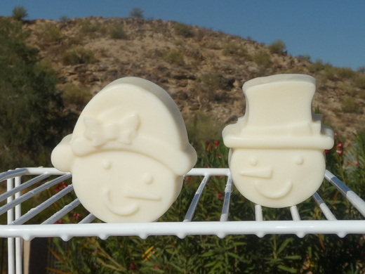 皂做好了,拿給老公看,他竟然比較屬意中式單模的完成品。那,我特別為他那些老美同事做的雪人皂,不就英雄無用武之地了嗎?