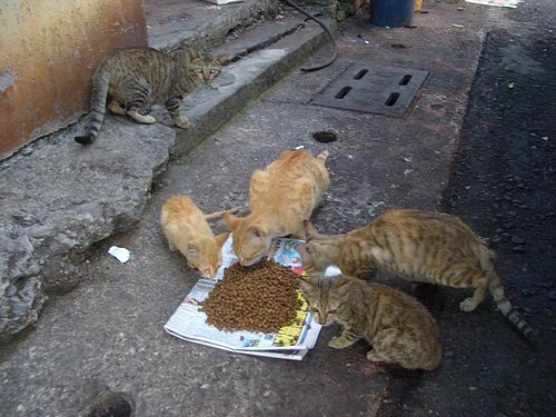 那裡有大大小小的橘子虎斑跟褐色虎斑約20隻