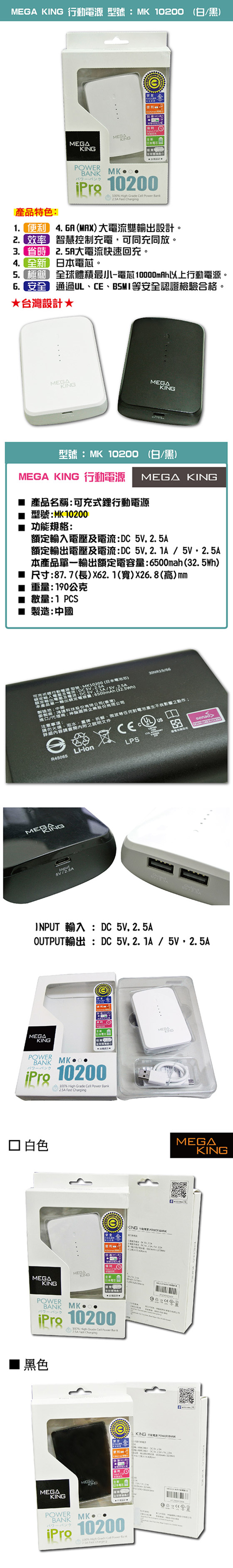品名:【MEGA KING】隨身電源 10200 iPro