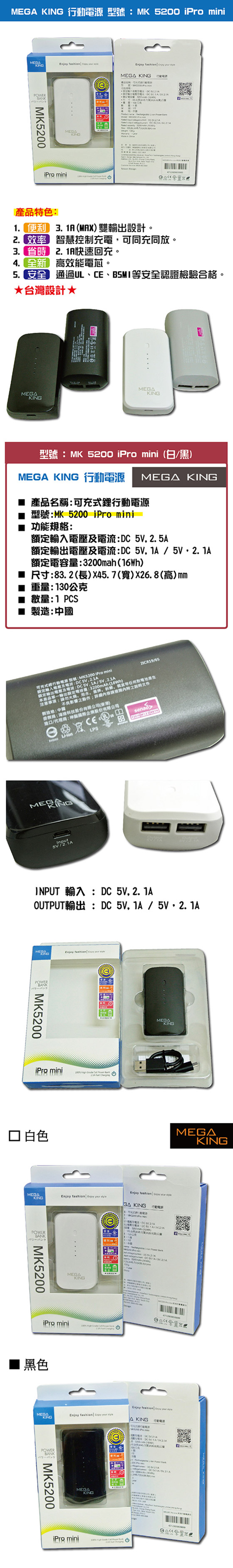 品名:【MEGA KING】隨身電源 5200 ipro mini