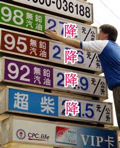 在國際油價持續走跌下,中油公司宣布,依浮動油價機制,將自今(十五)日凌晨零時起,再度調降各式汽油每公升一元、柴油每公升一·一元,本周調整後,九二無鉛汽油每公升為廿五·九元、九五無鉛汽油每公升廿七·四元、九八無鉛汽油每公升廿九·四元,終於回到三十元以下,而超級柴油每公升廿四元,國內油價再創五年來新低。
