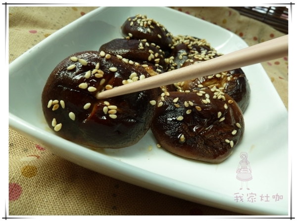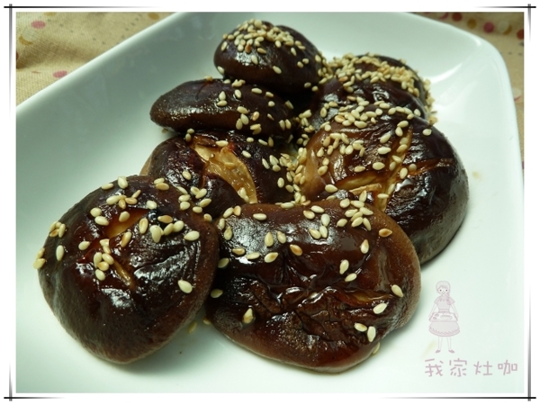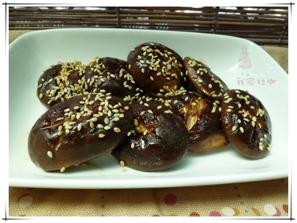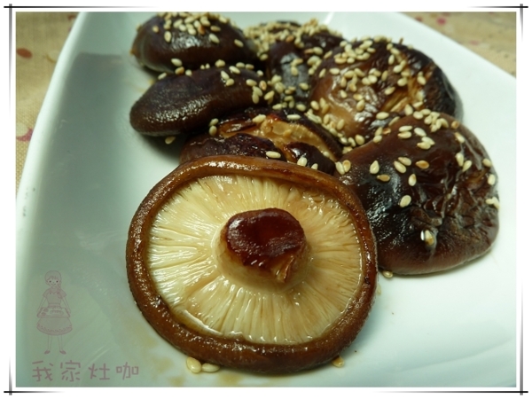 上桌前灑上白芝麻.就是風味絕佳的煎烤香菇!