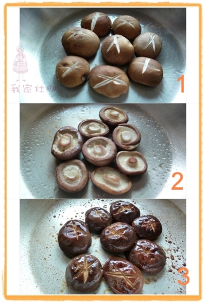 新鮮香菇去梗.並在菇面刻上十字.