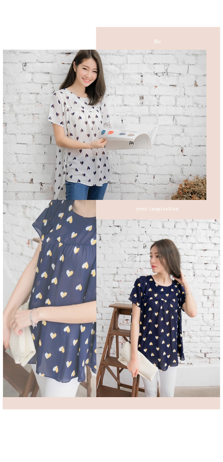 0608新品 配色愛心造型前短後長雪紡上衣.2色青年創業貸款