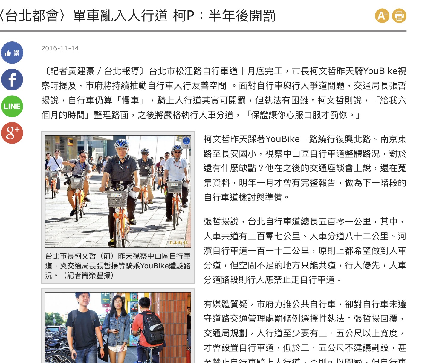 對於單車族疼愛有加,禁騎人行道,騎樓要半年宣導,半年後再開罰。然後再花半年時間宣導不能違停,明年一月一日開罰。
