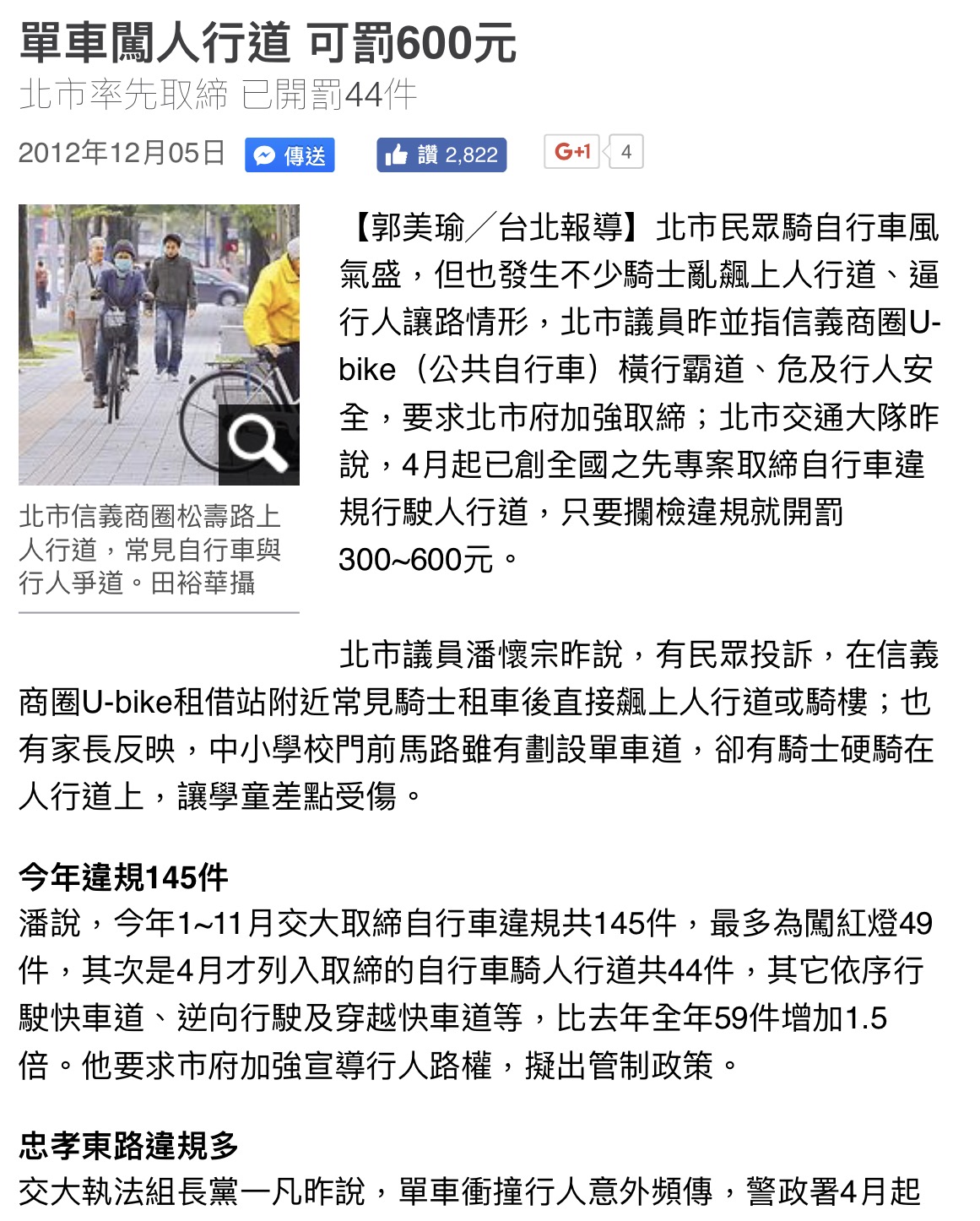 宣導不足? 2012,12,5 郝市長時期早已開罰![]()