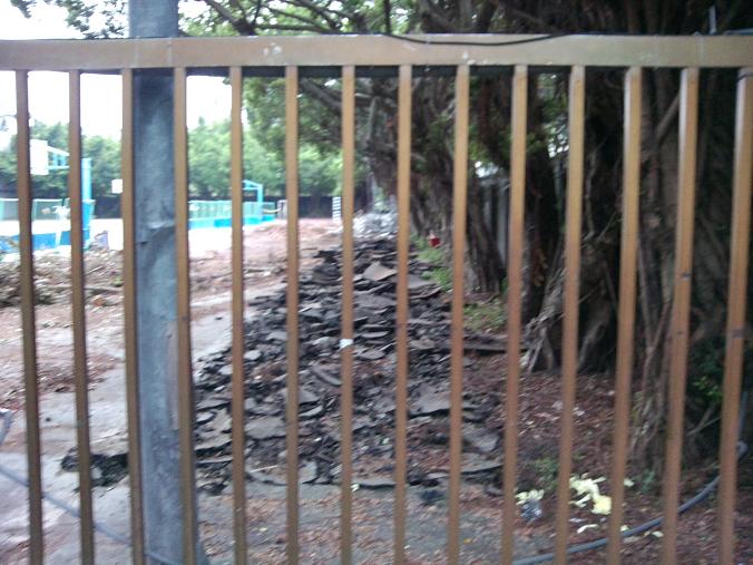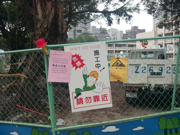 2014 年8月11日,暑假已過一半,才要以改善"通學步道"為由,把靠大安路外牆打掉,連司令台也一併打掉,今天開學第一天,還是一整片工地,也不知要拖多久完工,更不知又要浪費多少錢.
