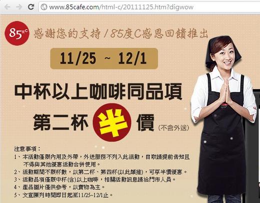 咖啡第二杯, "真" 的 半價 ??? ( 85 度 c)