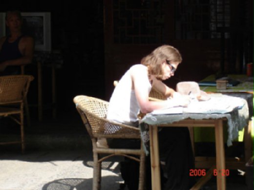 初入西街,望著街底的背景秀峰,很中國的街道房舍,然而等一走進流連其中,卻發現身旁大多是洋人,漫步在這條處處是酒吧、手工藝品店的 200米長石板步行街,很自然的就會打開全身的感官接收器,享受著西街現今的獨特人文風情。不過,喜歡手工藝品的愛爾沙,除了得費心壓抑血液裡瘋狂叫囂的血拼因子,背著與身形比例不太配合背包的我,還得應付著紛紛上前拉客的旅店民宿。