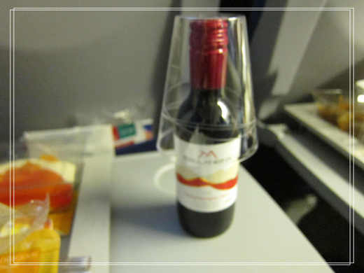為了長途飛行總睡不著的自己,在曼谷開始的第二段航程時,點來了紅酒,果然和網友說的一樣,來了一瓶。於是我喝光它,一路昏到AMS. 回程時,同樣喝一瓶,昏睡回曼谷。